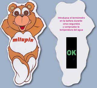 Tanto el termómetro como su soporte en PVC pueden introducirse en el agua sin que sufran deterioro de ninguna clase. Además la respuesta prácticamente inmediata de este tipo de termómetro hace que este producto sea muy útil para las mamás cuando bañan a sus bebes. Las formas pueden ser tan creativas como lo exija la comunicación de su campaña publicitaria. La indicación de la temperatura del agua puede ser en ºC ó gráfica, (indicando un rango determinado: ejemplo temperatura ideal 25 a 35ºC) |